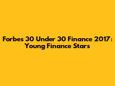 Forbes 30 Under 30 Finance 2017: Young Finance Stars