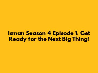 What to Expect: Diving Deep into Isman Season 4 Episode 1's Plot